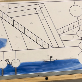One copy was cut up, and we used those pieces as a pattern to cut the glass. The other copy was used to put the glass on and build our piece. Each glass piece was cut to allow for space for the metal piece to fit in between. There was more math than I expected.