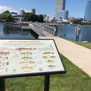 Lakeshore State Park -. Once downtown, I headed out to Lakeshore State Park. This is a relatively new State Park, and it has really grown and now offers all sorts of recreation opportunities. At the park, there is fishing available, spots for launching kayaks and canoes, a small nature trail, and beautiful views in every direction! There is a lighthouse to visit just north of the park, past the long fishing pier.